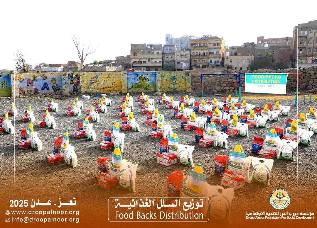 نفذت مؤسسة دروب النور للتنمية الاجتماعية مشروع توزيع السلال الغذائية، مستهدفة النازحين والأسر الفقيرة في منطقة الجحملية – حي جامع السنة بمدينة تعز، بالإضافة إلى الأيتام في مخيم السلام بمدينة عدن، وذلك ضمن جهودها الإغاثية المستمرة لتخفيف معاناة الفئات الأشد ضعفاً.
